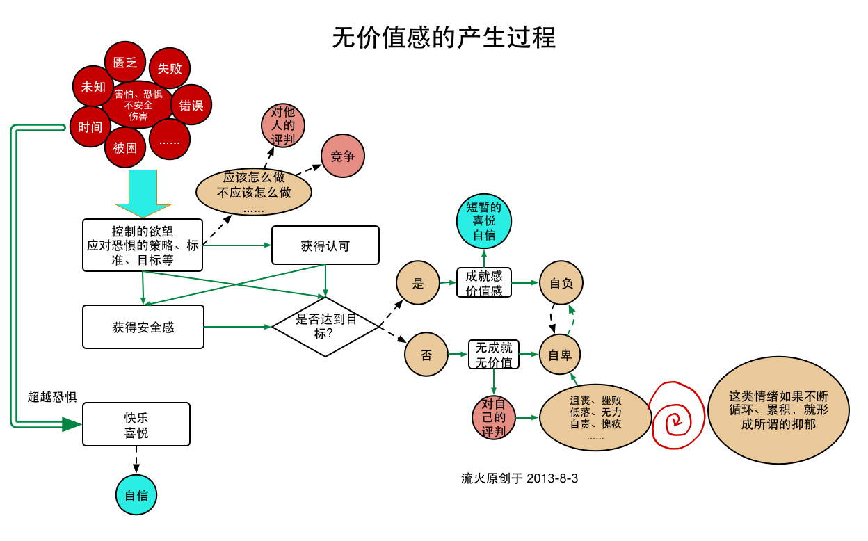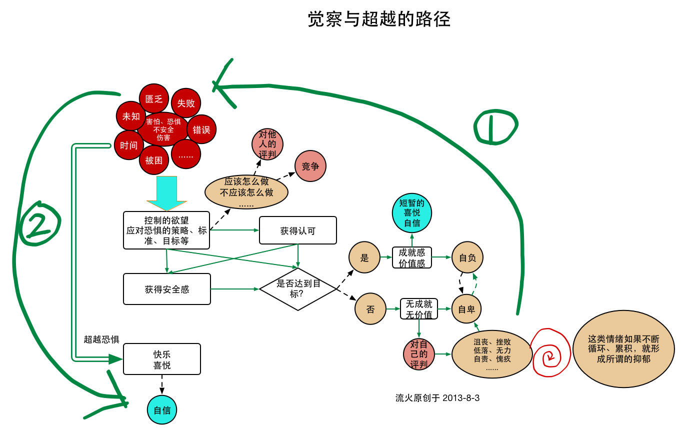 本图(点击放大会有更清晰的画面),是我数月来不断面对自己生命历程的心血与成果,分享在这里,希望为每一位渴望超越无价值感、超越沮丧抑郁等情绪的朋友,一个有力的支援。